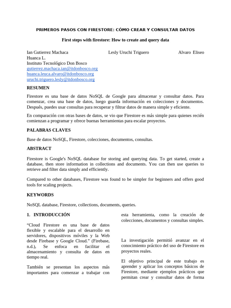 n.d.), Se enfoca en facilitar el conocimiento práctico del uso de Firestore en