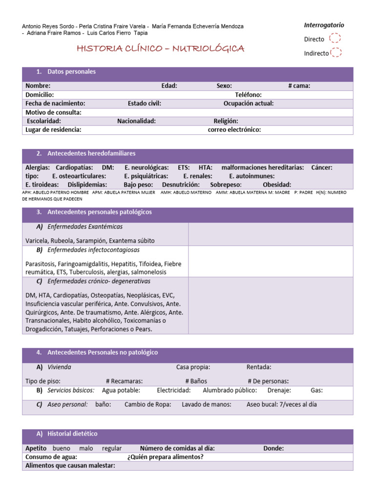 HISTORIA CLÍNICO – NUTRIOLÓGICA Indirecto