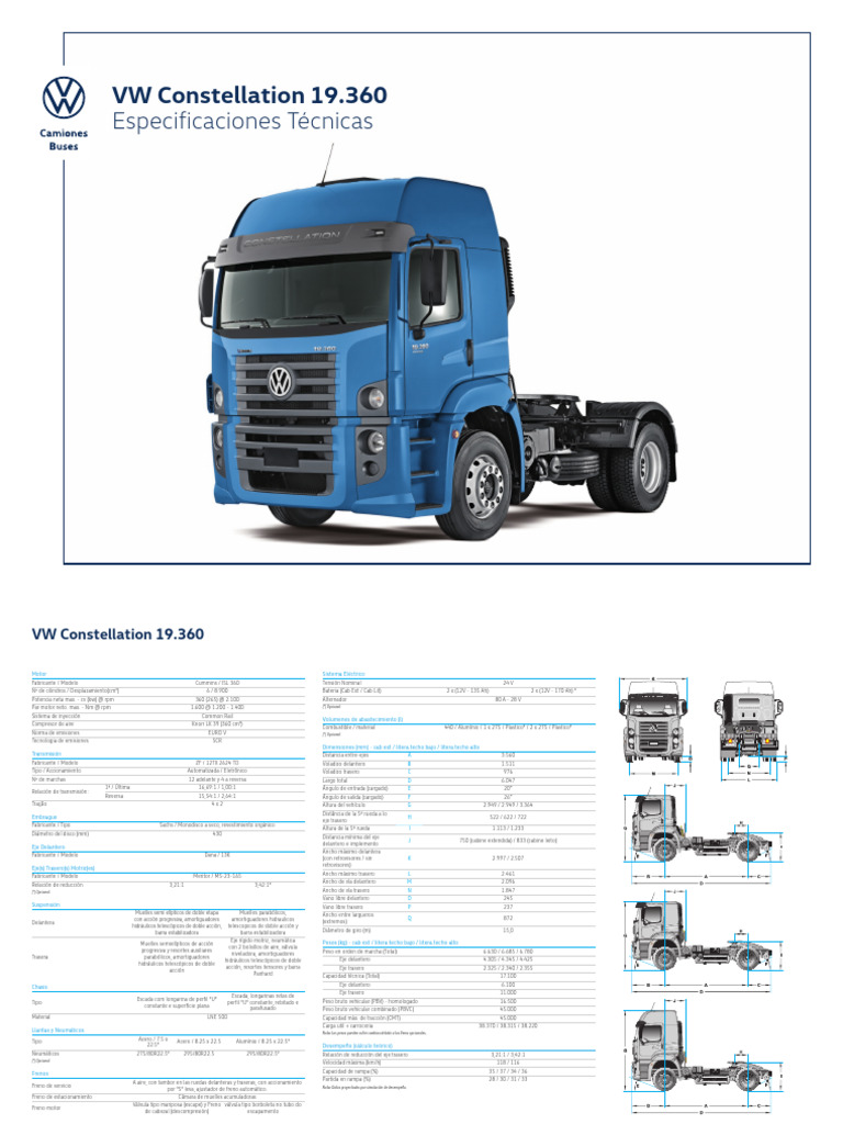 Nº de cilindros / Desplazamiento(cm³) 6 / 8.900 Bateria (Cab Ext / Cab Lit) 2 x (12V - 135 Ah) 2 x (12V - 170 Ah) *