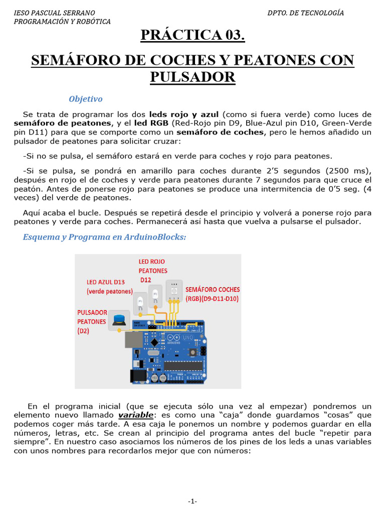 semáforo de peatones, y el led RGB (Red-Rojo pin D9, Blue-Azul pin D10, Green-Verde