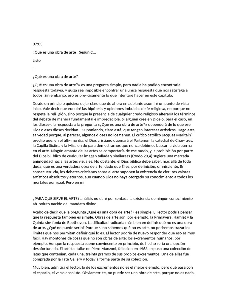 Qué Es Una Obra de Arte