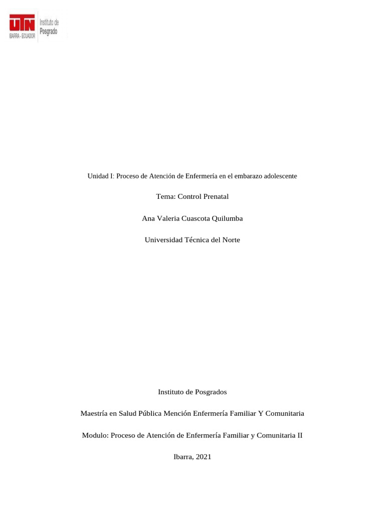 Unidad I: Proceso de Atención de Enfermería en el embarazo adolescente
