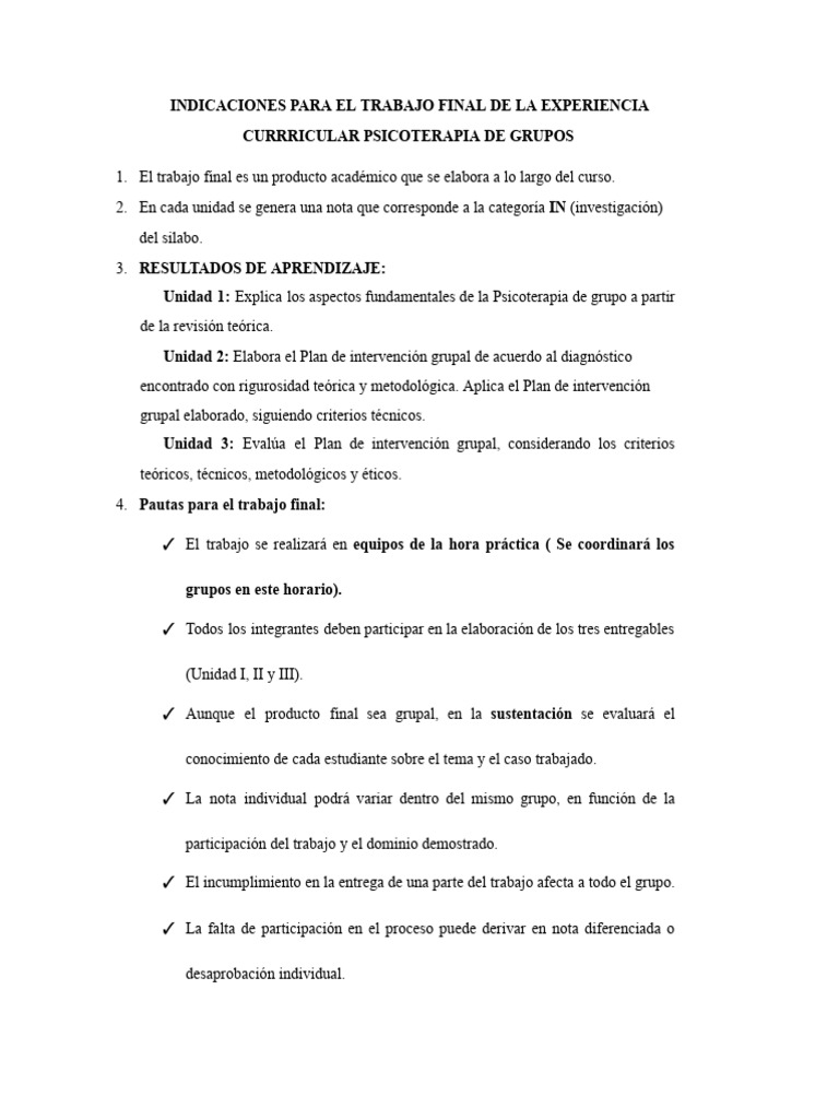 1. El trabajo final es un producto académico que se elabora a lo largo del curso.