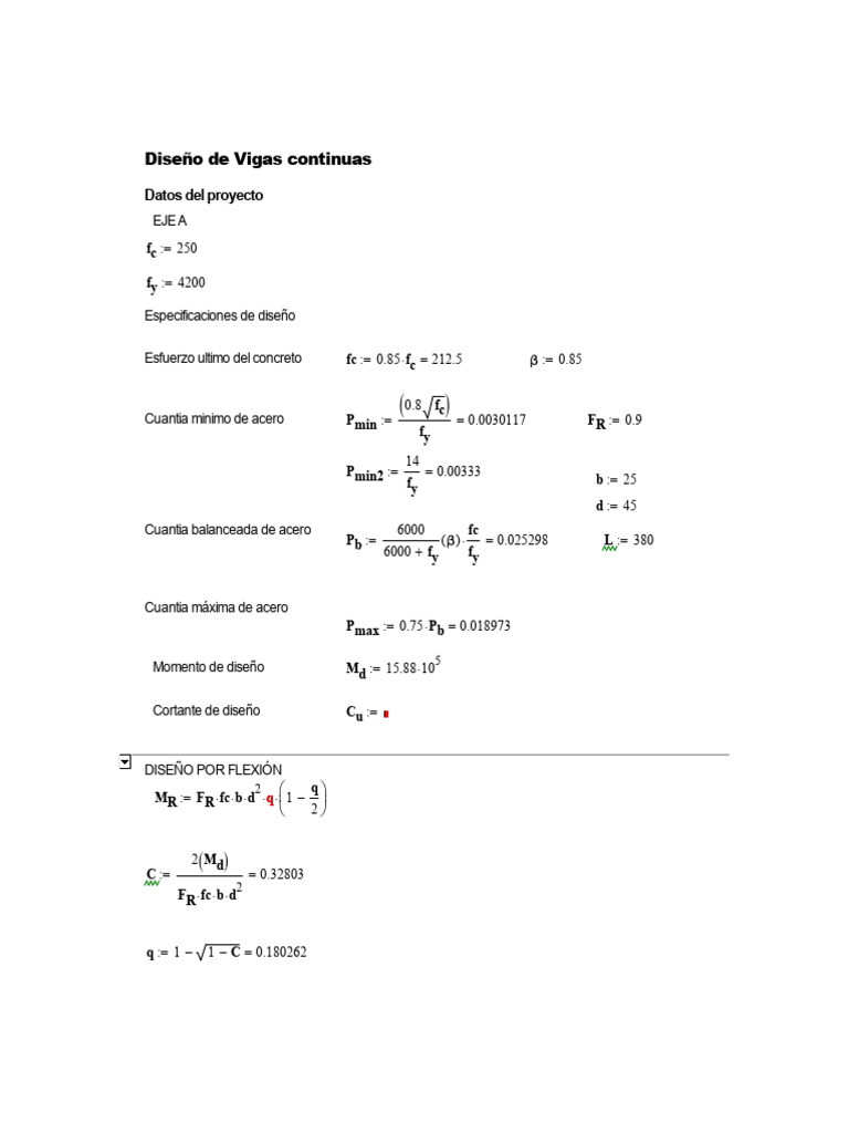Esfuerzo ultimo del concreto fc := 0.85 fc = 212.5 β := 0.85