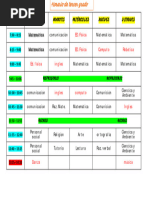 N.º HORA LUNES MARTES MIÉRCOLES JUEVES VIERNES