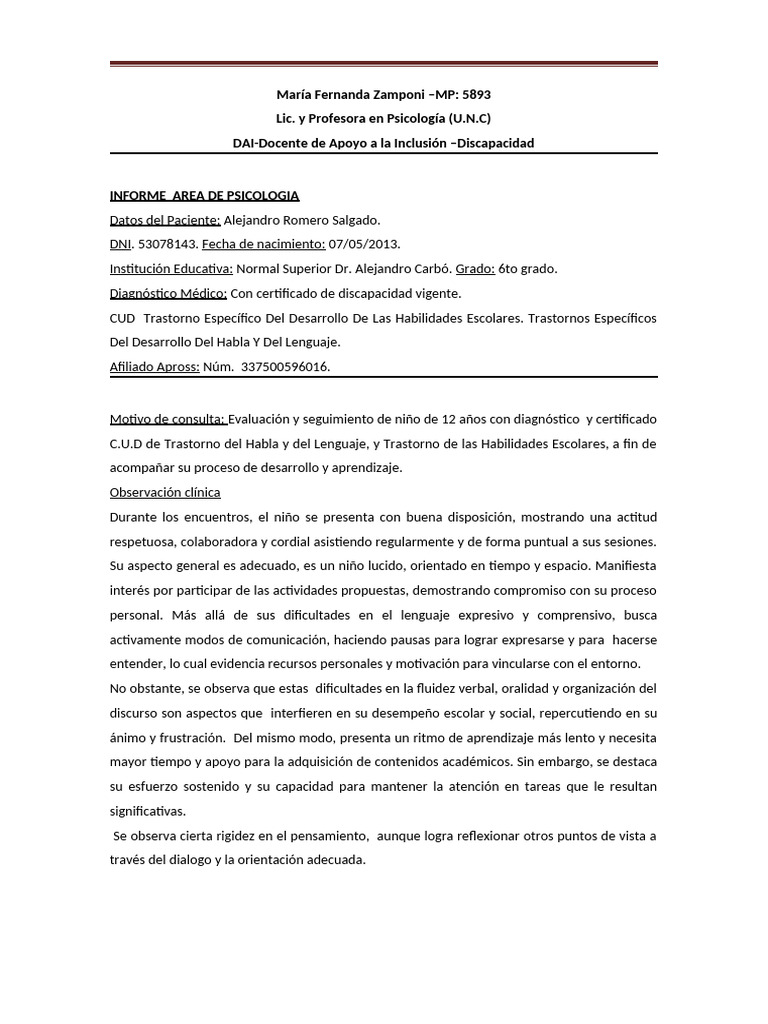 INFORME AREA DE PSICOLOGIA