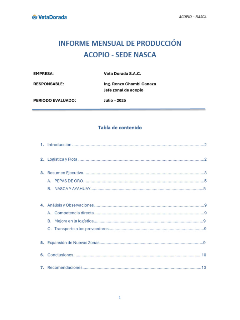 El presente informe tiene como finalidad presentar un análisis detallado del desempeño