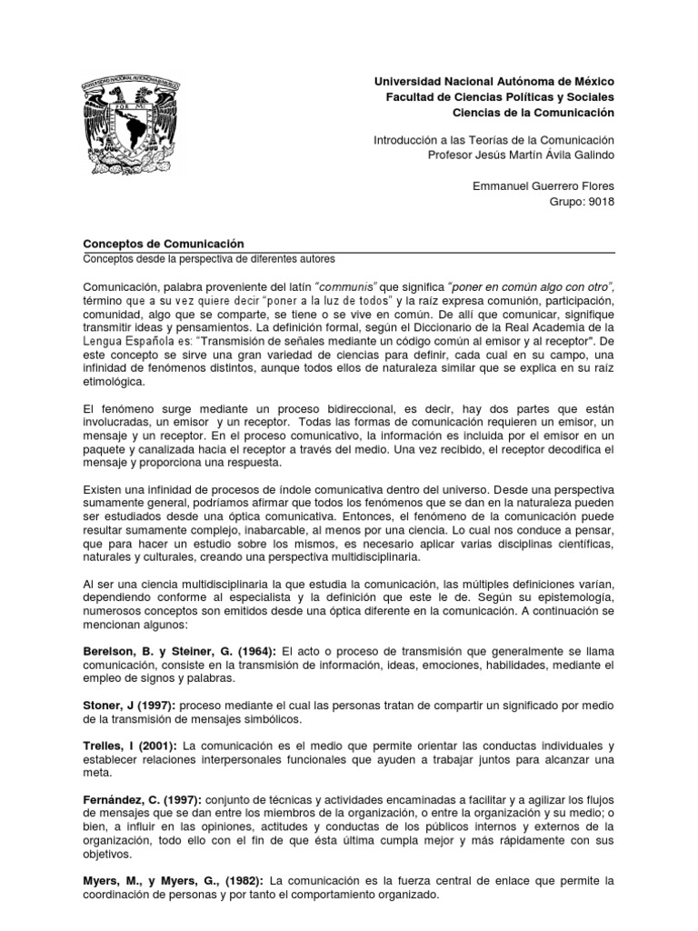Universidad Nacional Autnoma de Mxico Facultad de Ciencias Polticas y Sociales Ciencias de la Comunicacin Introduccin a las Teoras de la Comunicacin Profesor