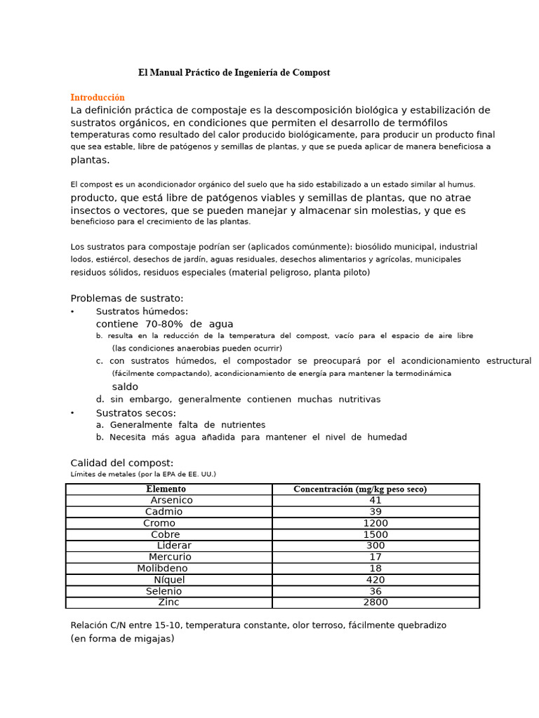 La definición práctica de compostaje es la descomposición biológica y estabilización de