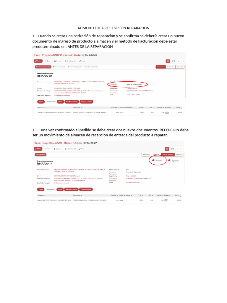 1.- Cuando se crear una cotización de reparación y se confirma se debería crear un nuevo