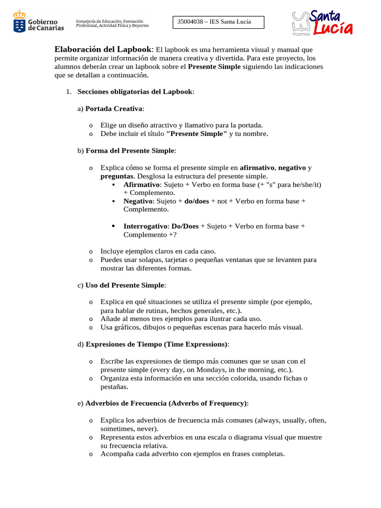 alumnos deberán crear un lapbook sobre el Presente Simple siguiendo las indicaciones