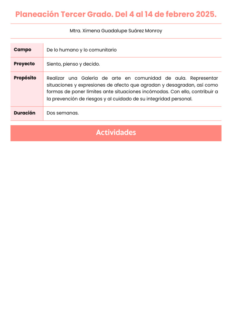 Planeación Tercer Grado. Del 4 al 14 de febrero 2025.