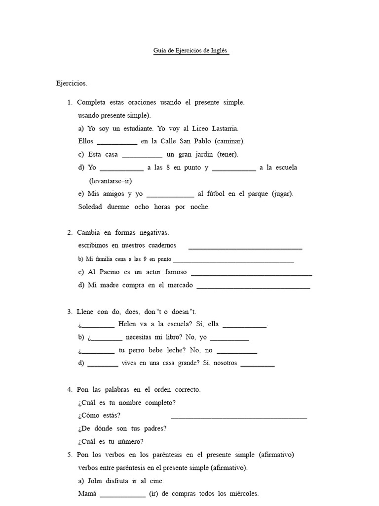 Guía de Ejercicios de Inglés