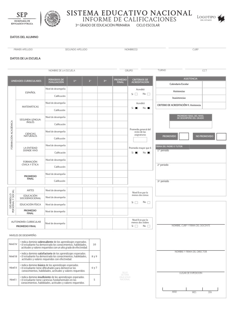 Nivel de desempeño FIRMA DEL PADRE O TUTOR