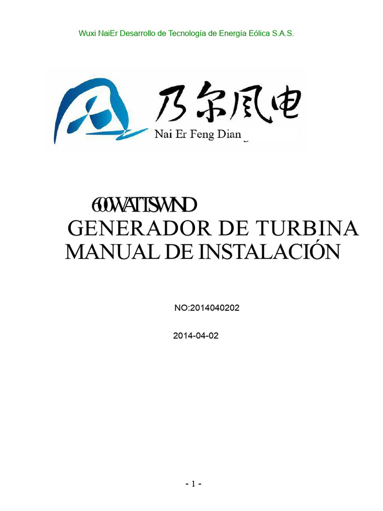 Wuxi NaiEr Tecnología de Desarrollo de Energía Eólica S.A., Ltd.