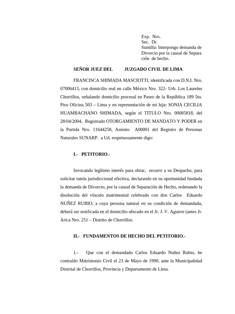 SEÑOR JUEZ DEL JUZGADO CIVIL DE LIMA
