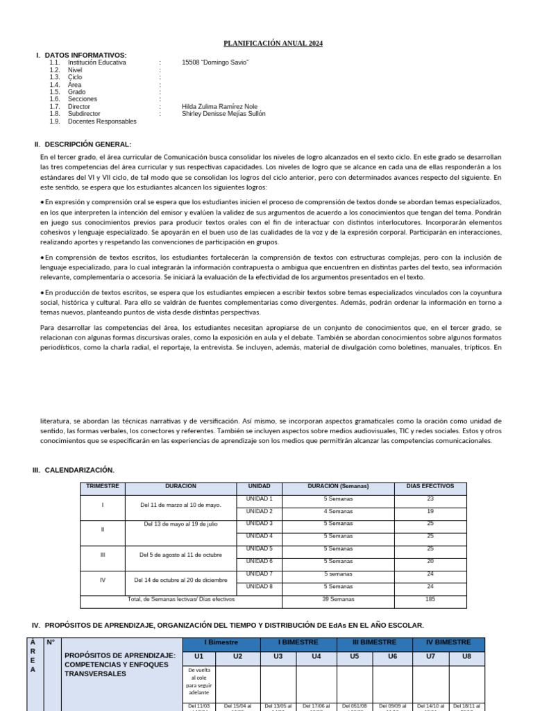 TRIMESTRE DURACIÓN UNIDAD DURACIÓN (Semanas) DÍAS EFECTIVOS