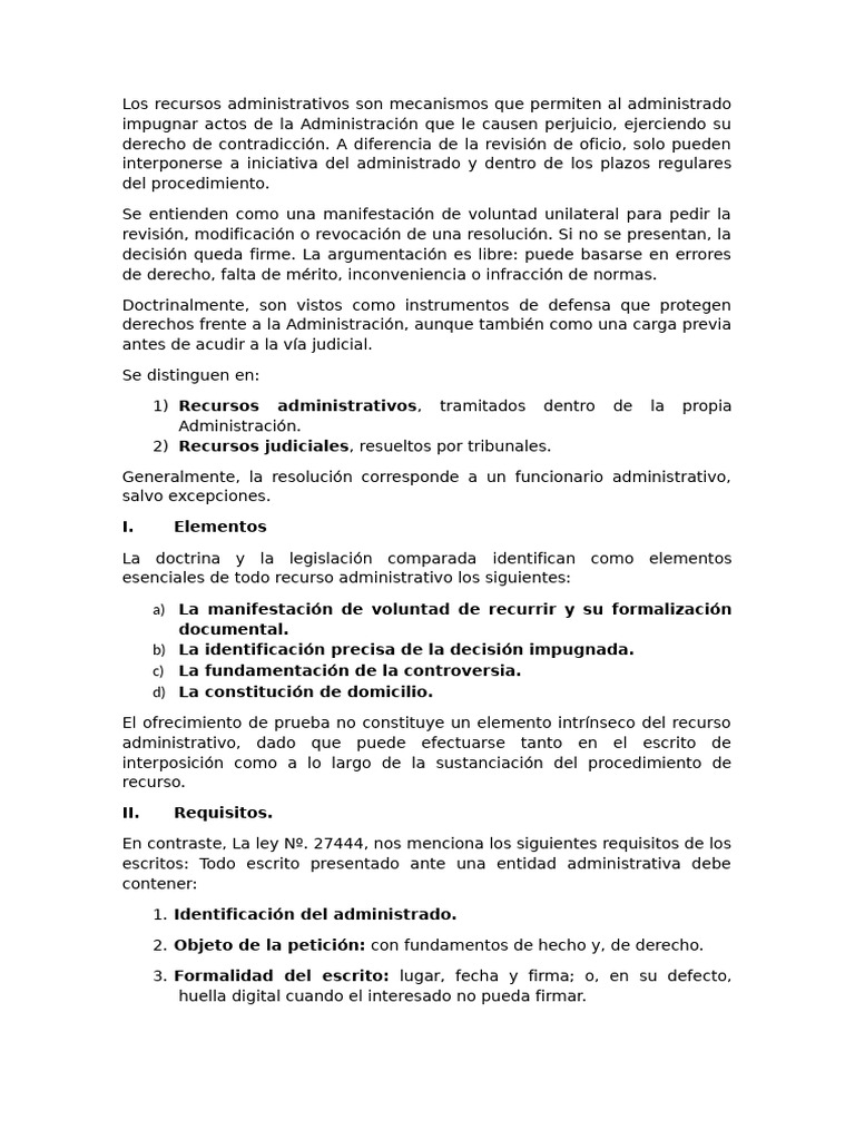 esenciales de todo recurso administrativo los siguientes: