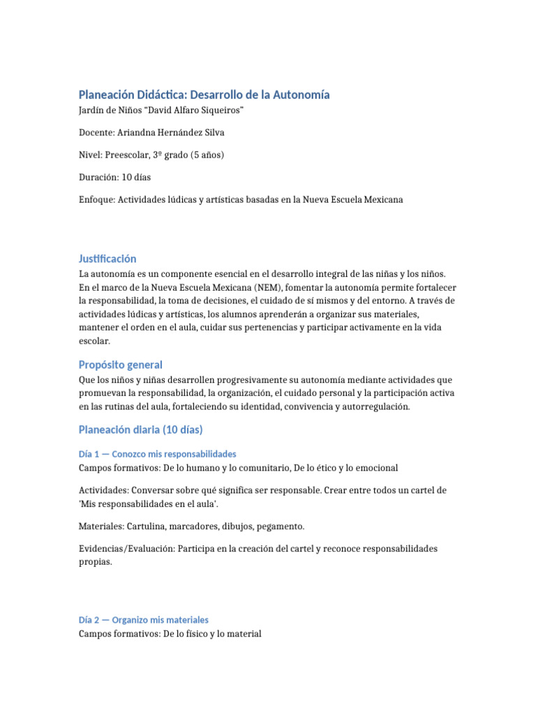 Planeación Didáctica: Desarrollo de la Autonomía
