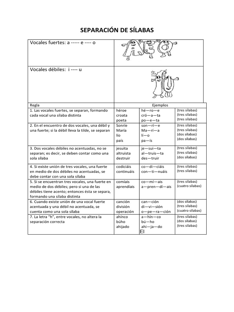 1. Las vocales fuertes, se separan, formando héroe hé—ro—e (tres sílabas)