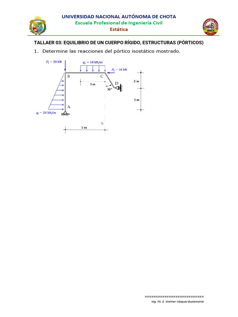 TALLAER 03: EQUILIBRIO DE UN CUERPO RÍGIDO, ESTRUCTURAS (PÓRTICOS)