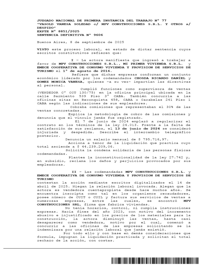 “VASOLD VANESA SOLEDAD c/ MPV CONSTRUCCIONES S.R.L. Y OTROS s/