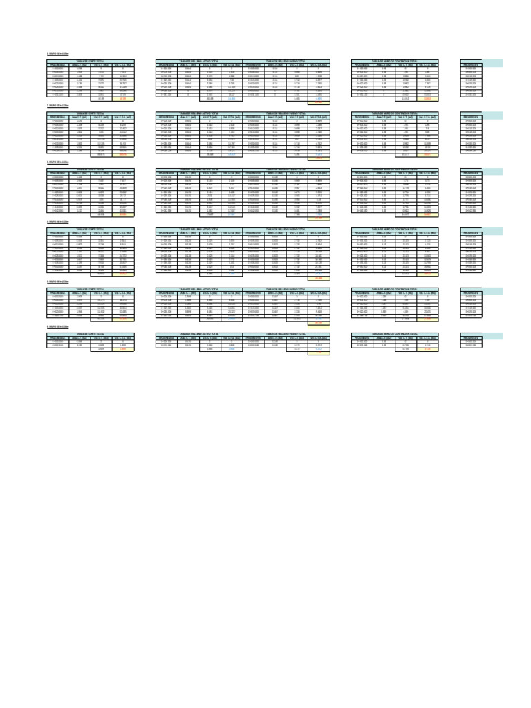 TABLA DE CORTE TOTAL TABLA DE RELLENO ACTIVO TOTAL TABLA DE RELLENO PASIVO TOTAL TABLA DE MURO DE CONTENCION TOTAL TABLA DE SOLADO TOTAL