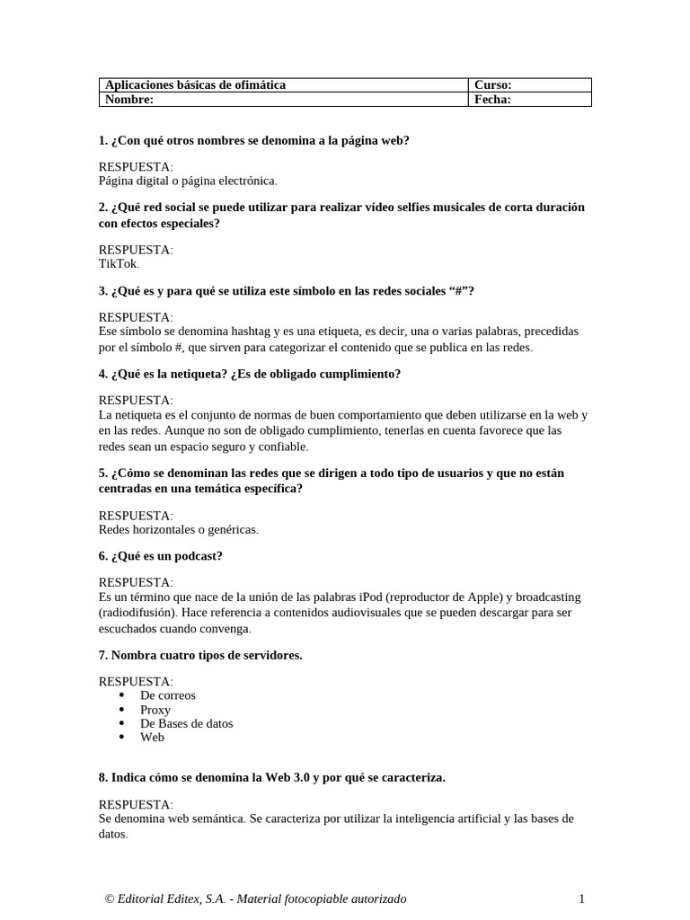 © Editorial Editex, S.A. - Material fotocopiable autorizado 1