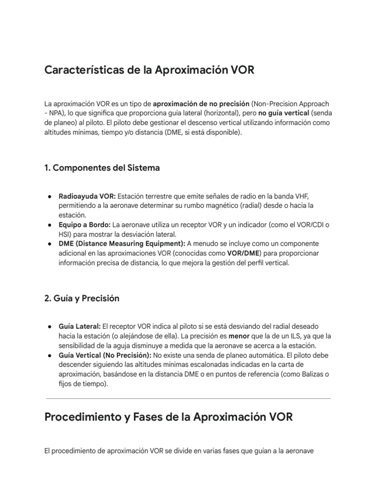 El procedimiento de aproximación VOR se divide en varias fases que guían a la aeronave