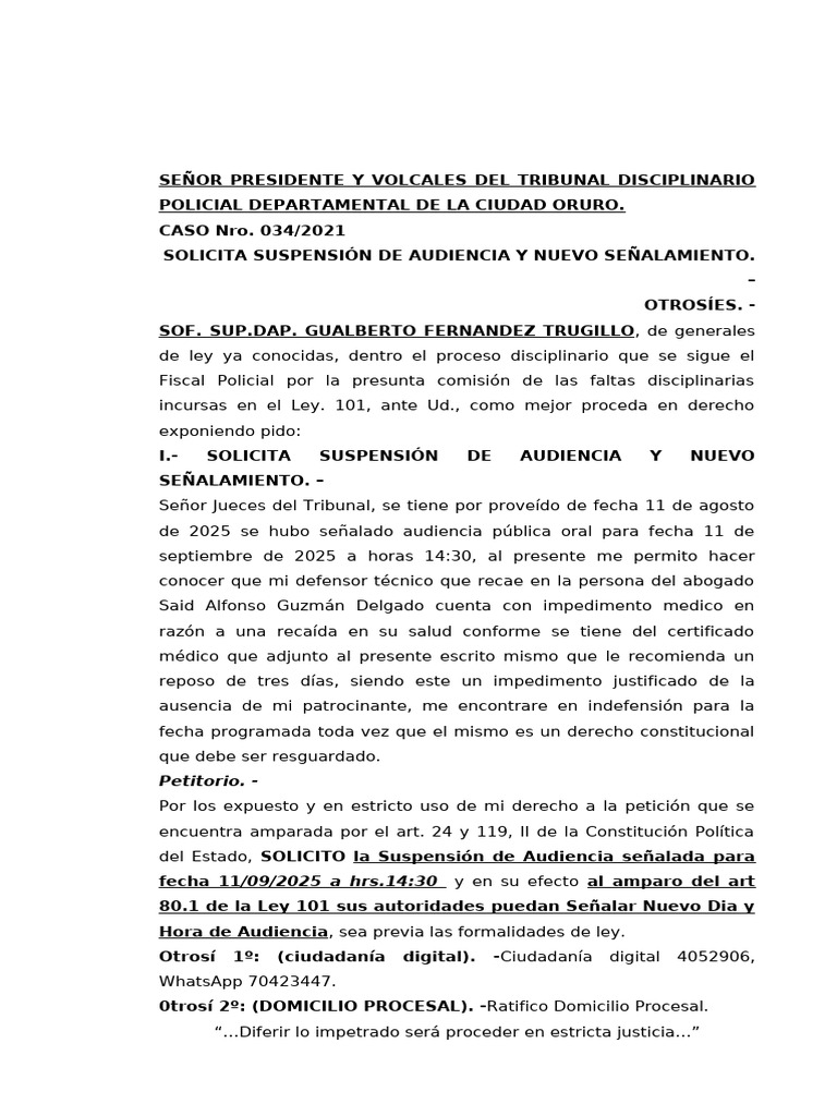 fecha 11/09/2025 a hrs.14:30 y en su efecto al amparo del art