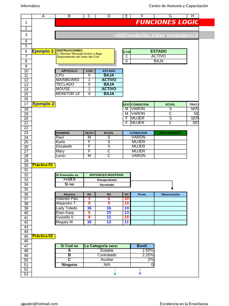 6 La función =SI( ) es una de las más potentes que tiene Excel. Esta
