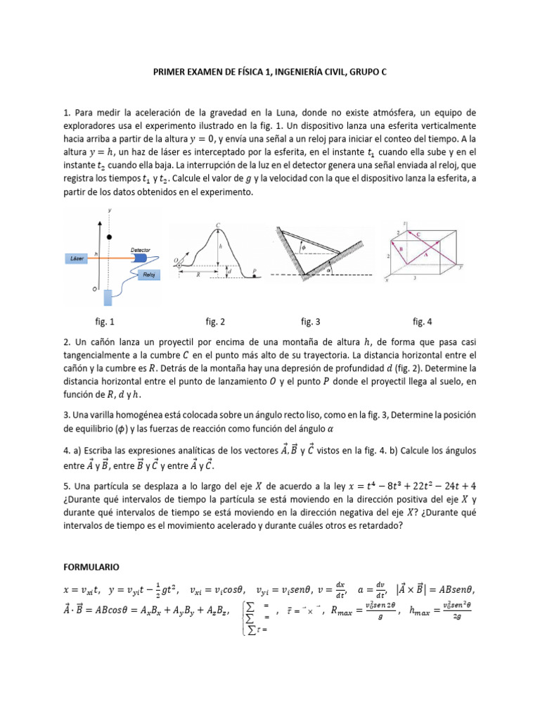 PRIMER EXAMEN DE FÍSICA 1, INGENIERÍA CIVIL, GRUPO C