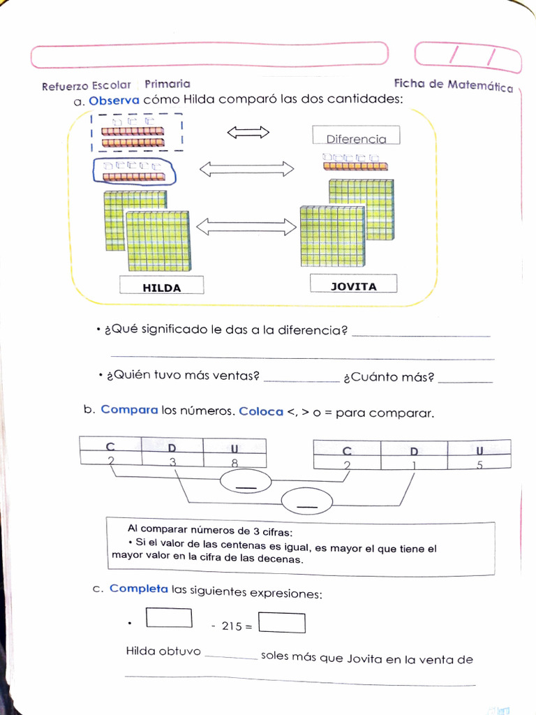 a. Observa cómo Hildoa comparó las dos cantidades:
