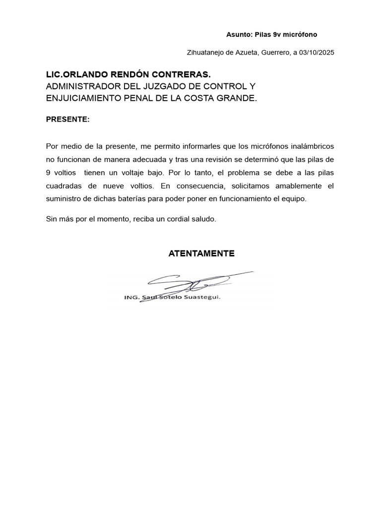 Por medio de la presente, me permito informarles que los micrófonos inalámbricos