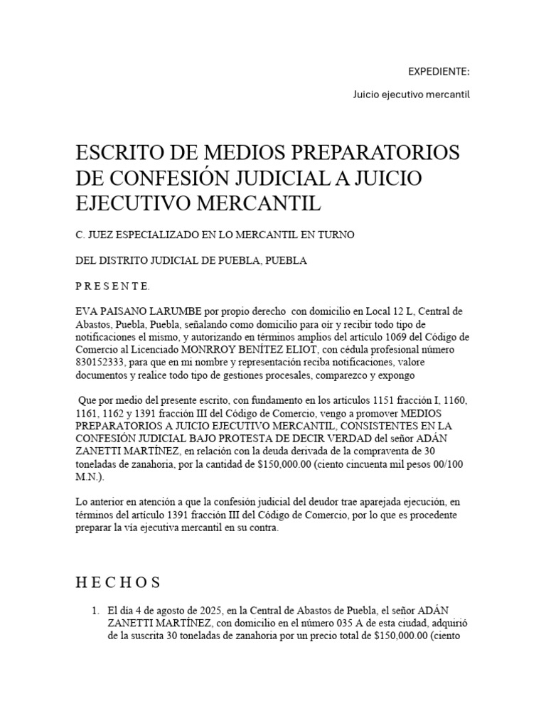 3. En consecuencia, acudo a su Señoría a fin de preparar el juicio ejecutivo mercantil,