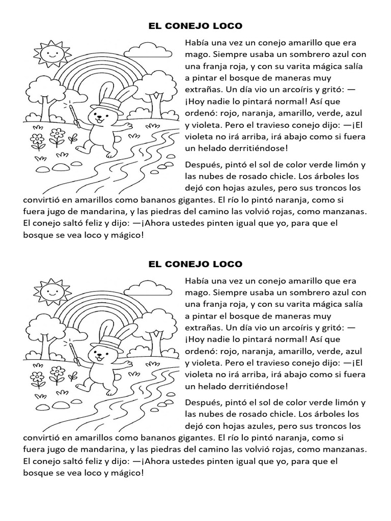 El conejo saltó feliz y dijo: —¡Ahora ustedes pinten igual que yo, para que el
