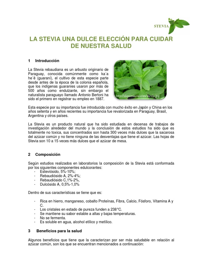 LA STEVIA UNA DULCE ELECCIN PARA CUIDAR DE NUESTRA SALUD