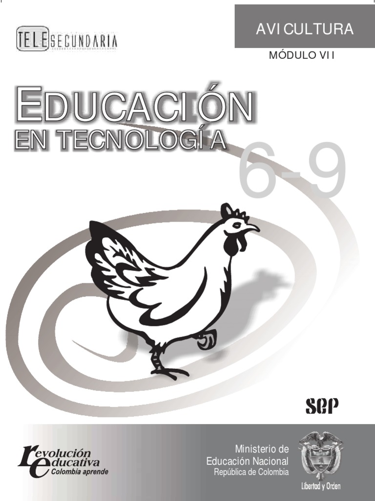 Estimado alumno: Nos dirigimos a ti ya que dentro de algunos aos tendrs en tus manos el destino de nuestra patria. Actualmente formas parte de una generacin a la cual le tocar resolver problemas que tal vez nunca antes se haban presentado, por lo que se requiere de ti un esfuerzo ms fuerte, una actitud ms consciente y una accin ms decidida. Con el presente libro, se contribuir a una educacin integral que te impulse al desarrollo de tus diferentes capacidades y aptitudes, tanto en el aspecto personal como social. Con ello, se propone darte una cultura funcional y slida caracterizada por su formacin cientfica y humanstica, para la activacin de tu espritu solidario, en la participacin social, econmica y para el desarrollo de valores y actitudes con el compromiso comn de engrandecer a Colombia. En este mdulo se brindan los elementos necesarios para que puedas iniciar la cra y explotacin de algunas aves de corral como: gallinas, pavos, patos, etc. Adems, te sugerimos la forma de prevenir, tratar y controlar algunas enfermedades que se pudieran presentar en cada uno de los mdulos o tecnologas. Recuerda que la seleccin de uno de los mdulos para este ao, deber realizarse conjuntamente entre alumnos y maestros, considerando los intereses y necesidades de los alumnos y sus comunidades, as como las caractersticas de la telesecundaria, y los principales recursos naturales con que cuente la comunidad o regin. Lo anterior permitir llevar a la prctica todo lo aprendido, y el xito que alcances en el trabajo escolar, ser el primer paso para que, junto con tu esfuerzo y el de tus compaeros, ayudes a elevar tu nivel de vida y el de tu comunidad.