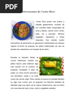 plato muy apreciado en la costa Pacfica de la mayora de pases de Amrica y muy comn en la de Costa Rica. Originarios de Per, se trata de pescado fresco que se ha marinado en jugo de limn (o de otros ctricos), con cebolla, hierbas y especias. Los cidos del limn provocan que la protena del pescado se desnaturalice. Esto es como el proceso de los pepinillos y, bsicamente, el pescado se cocina sin calor. Se sirve con tortillas fritas, literalmente se le hace la boca agua. Se pueden encontrar nachos en algunos restaurantes, pero no es como en Mxico, donde se comen tortillas tostadas y salsa religiosamente. Usted puede encontrar cocina internacional en algunos lugares, y la calidad puede ser muy satisfactoria. Slo tenga cuidado de que no le cobren ms de la cuenta lo que es comn en los restaurantes de mejor presentacin. En Costa Rica aman los postres ricos que son muy dulces y cremosos. El postre ms popular y tradicional es el tres leches. Es un queque esponjoso que se empapa con leche evaporada, leche condensada y crema, delicioso! Bebidas Refrescantes La bebida ms fcilmente disponible es jugo de frutas, las refrescantes frutas tropicales son abundantes en Costa Rica. Pregunte por una bebida natural. Suele haber una gran cantidad disponible. Algunos ejemplos son la pia, mora, cas, una fruta nativa de Costa Rica, sanda, meln, papaya, mango y frutas mixtas. El trmino Batido se refiere a "licuado" y se le preguntar si lo prefiere en agua o leche. Una deliciosa bebida tradicional llamada Horchata est hecha de harina de maz y canela, y es deliciosa. Una bebida interesante que es tambin muy popular es la bebida de semillas de chan. Esta semilla, cuando se sumerge en agua, produce una mucosa y le proporciona a su cuerpo cido linoleico, un saludable acido graso omega-6. Hay una cosa segura en Costa Rica, su sed ser lo suficientemente satisfecha! Alguien quiere cerveza? Costa Rica tiene una importante fbrica de cerveza llamada Cervecera de Costa Rica que, lamentablemente, ahora es un conglomerado de Florida Ice and Farm Company. Ocho tipos de cervezas se elaboran all. Imperial es la ms popular. Es similar a una Pilsner Americana. La empresa ha elaborado esta cerveza natural desde 1924 y ahora la ha empezado a distribuir en los EE.UU., Australia y Gran Caimn. Pilsen viene en segundo lugar. El color es un poco ms claro y tiene menos malta. Otra cerveza popular es la Bavaria. Viene en ligth, gold, y dark. Esta no debe confundirse con