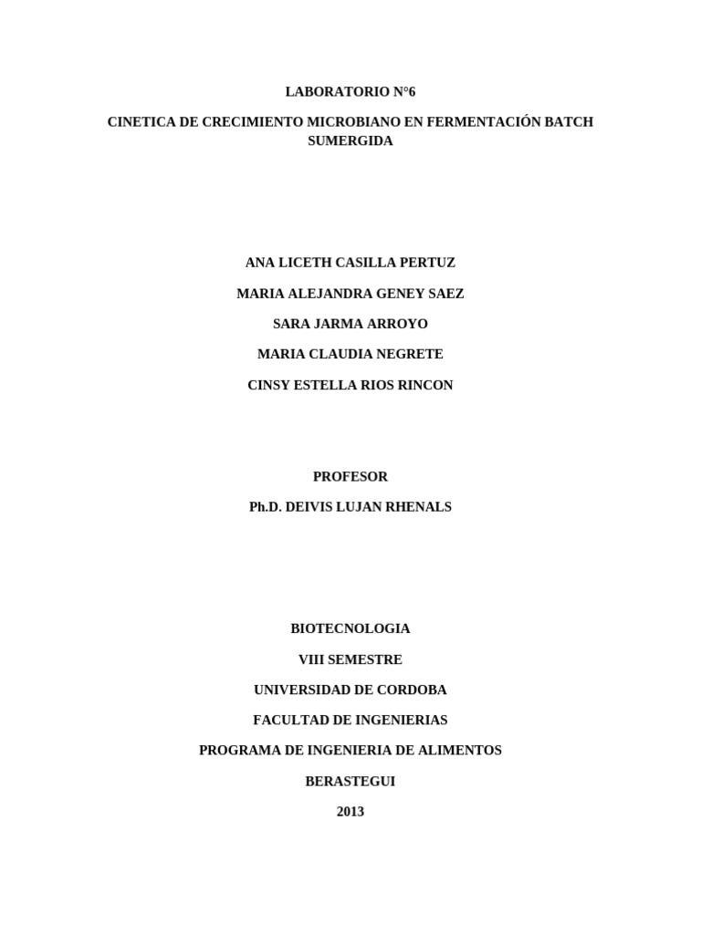 CINETICA DE CRECIMIENTO MICROBIANO EN FERMENTACIÓN BATCH