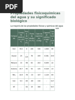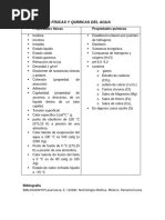 Cuadro comparativo de propiedades físicas y químicas del agua