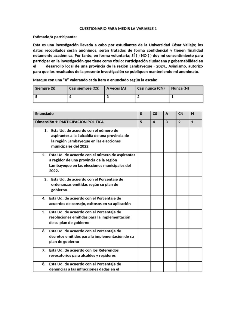 CUESTIONARIO PARA MEDIR LA VARIABLE 1