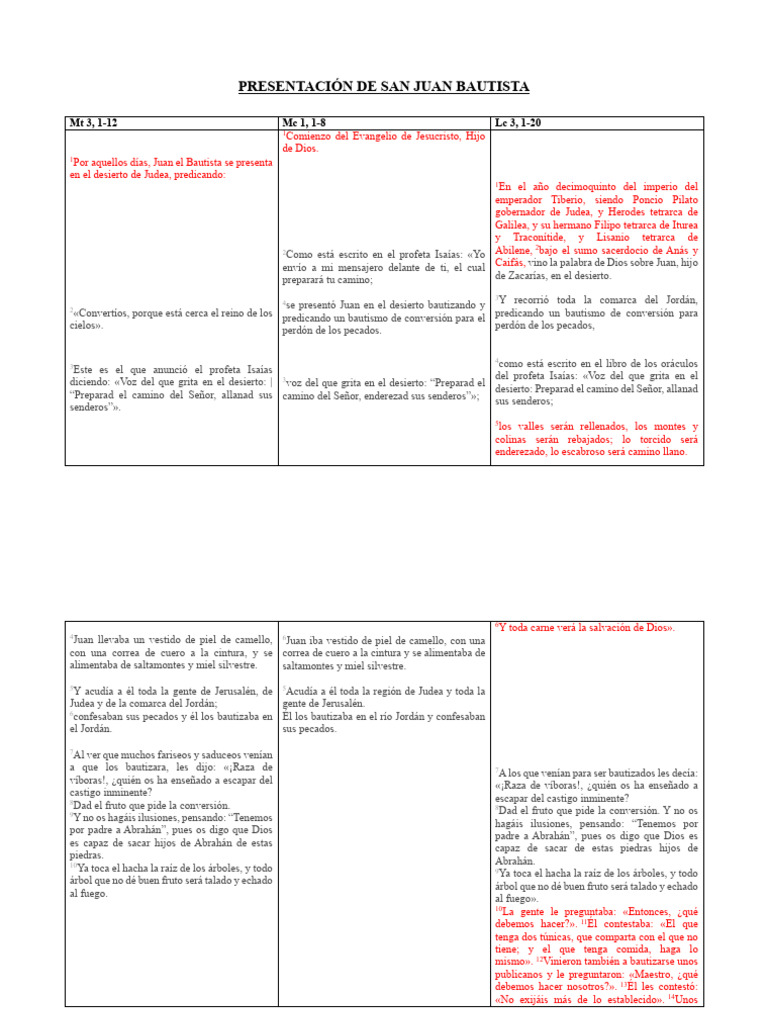 Mt 3, 1-12 Mc 1, 1-8 Lc 3, 1-20