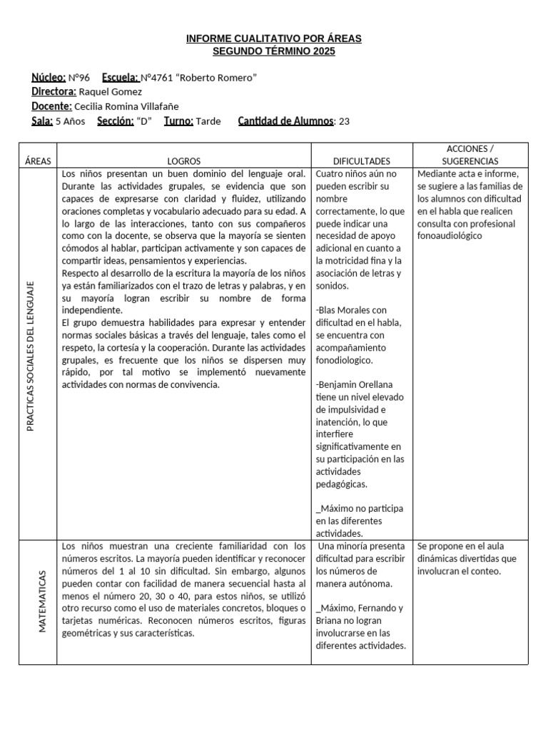 INFORME CUALITATIVO POR ÁREAS