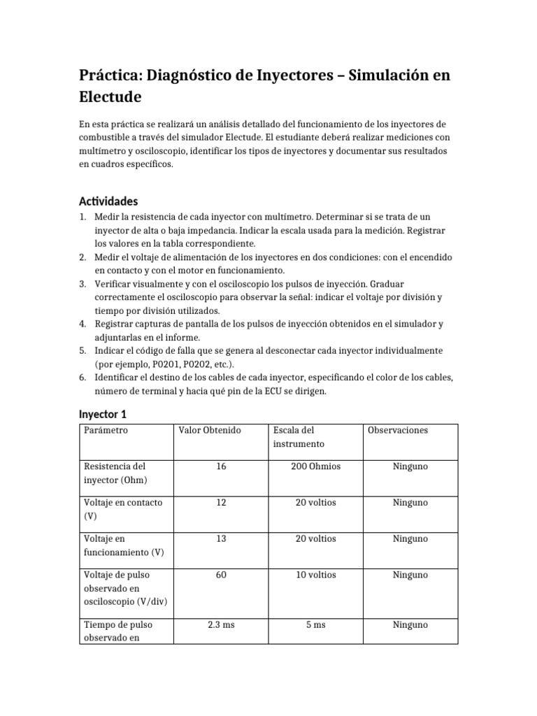 En esta práctica se realizará un análisis detallado del funcionamiento de los inyectores de