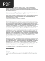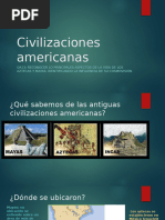Entre los mayas, la En el mbito artstico la cronologa se determinaba civilizacin inca mostr un mediante un complejo gran desarrollo. Crearon sistema calendrico. El ao hermosos templos muy comenzaba cuando el Sol trabajados ya que la cruzaba el cenit el 16 de religin formaba un gran julio y tena 365 das. El porcentaje en la vida del calendario maya, aunque inca. Tambin realizaron muy complejo, era el ms ostentosos palacios y exacto de los conocidos grandes fortalezas hasta la aparicin del estratgicamente calendario gregoriano en el emplazadas, como Machu siglo XVI. Picchu. Las obras publicas cambien tuvieron su Otro avance fue la escritura adelanto ya que, adems del estos pueblos desarrollaron sistema de caminos un mtodo de notacin empedrados, tambin jeroglfica y registraron su construyeron grandes mitologa, historia y puentes colgantes, canales rituales en inscripciones El arte azteca es violento y para regado y de grabadas y pintadas en rudo pero deja entrever una acueductos para permitir estelas (bloques o pilares de complejidad intelectual y una una optima explotacin piedra), en los dinteles y sensibilidad que nos hablan terrenal. escalinatas y en otros restos de su enorme riqueza monumentales. simblica. Tanto en el aspecto cientfico como en el artstico, los mayas de las tierras bajas elevaron a altsimo nivel de perfeccin.