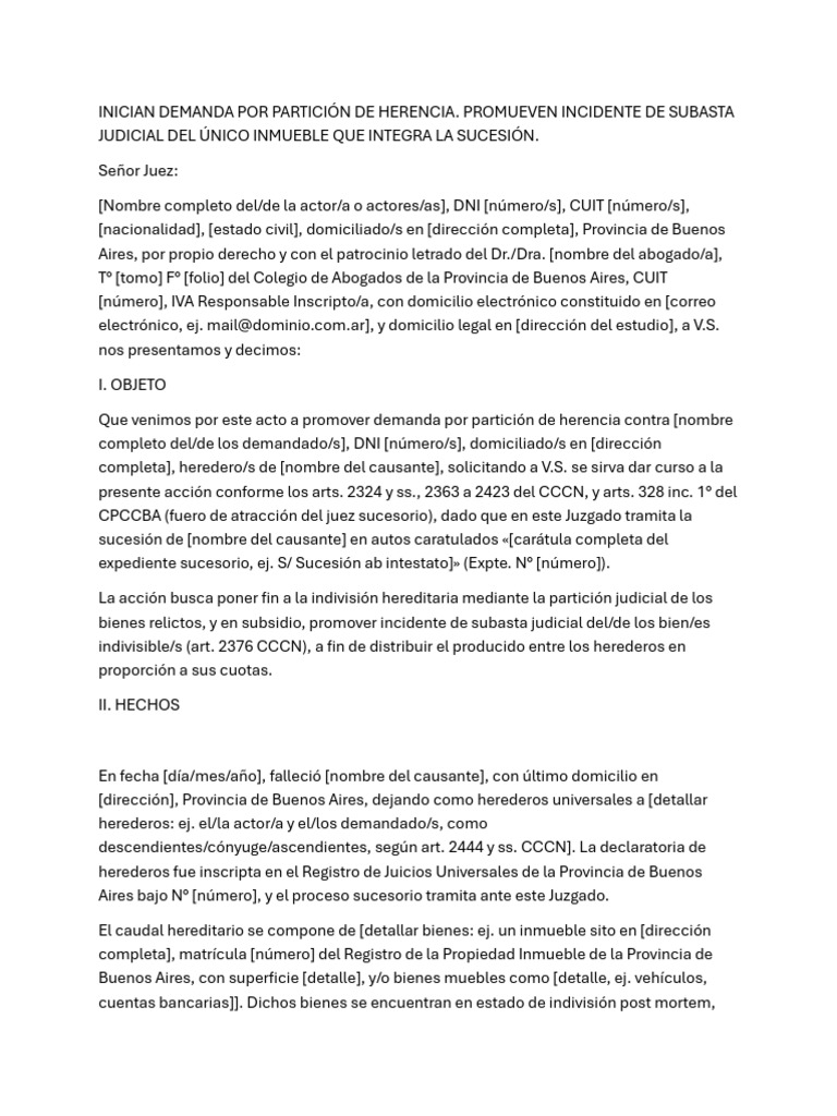 Que venimos por este acto a promover demanda por partición de herencia contra [nombre