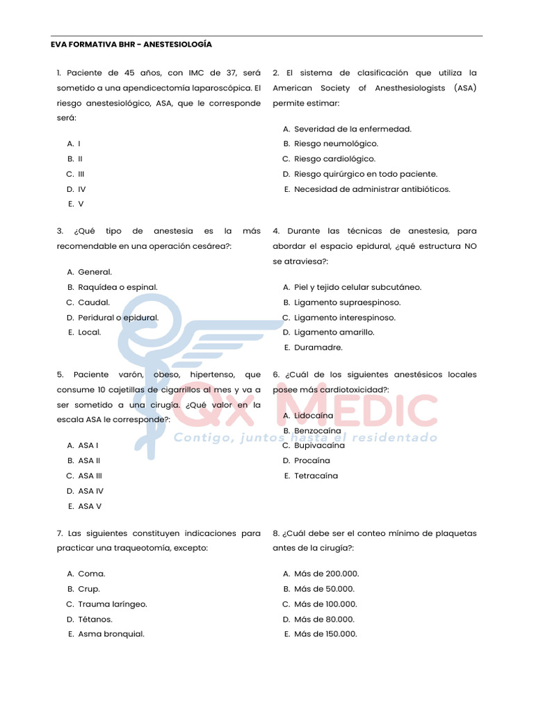 EVA FORMATIVA BHR - ANESTESIOLOGÍA