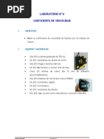 e s l a m i s m a v e l o c i d a d q u e a l c a n z a u n o b j e t o q u e s e d e j a OBJETIVO: estudiar el flujo de un liquido contenido en un recipiente a travs de un pequeo orificio bajo la accin de la gravedad.