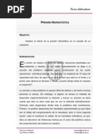 El valor de la velocidad en cada libre desde una altura, es decir, la velocidad que una gota de agua adquirira al caer libremente desde la superficie del agua hasta el agujero cuando la altura a la que se encuentra dicha superficie es a 0,12m de la base de la botella, conociendo la ecuacin de dicha velocidad y teniendo en cuenta nuestros los valores utilizados, viene dada por: v = 2 gh (m / s ) De esta manera, conociendo el valor de la aceleracin de la gravedad 9,81m/s 2 calculamos la velocidad sin ms que sustituir como sigue para dicha altura: v = 2 gh v = 2 9.81 0.015 = 0.543m / s La calculamos ahora para el caso de que la superficie del agua se encuentre a 22,5cm de la base, as, tendremos: v = 2 gh = 2 9.81 0.12 = 1.534m / s Vemos que bajo estas condiciones la velocidad de salida del liquido por el orificio aumenta, pero... por qu ocurre esto? Pues esto ocurre porque la columna de volumen del liquido sobre el orificio ejerce una presin sobre el mismo haciendo que el liquido sea expulsado a traves de l con mayor fuerza, mayor velocidad. Dado que para la segunda velocidad calculada el volumen de liquido que se soporta sobre el orificio es mayor, parece y es lgico pensar que ejercer una mayor presin sobre el agua que fluir por dicho orificio, haciendo que la velocidad aumente. Tenemos, por tanto, que la